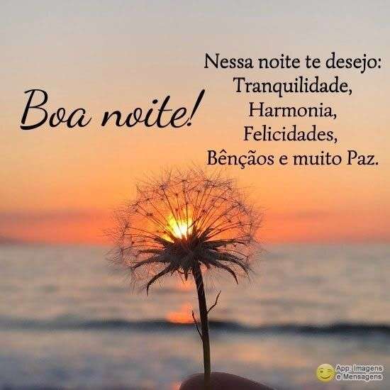 Nessa noite te desejo: Tranquilidade, Harmonia, Felicidades, Bênçãos e muito Paz. Boa noite!