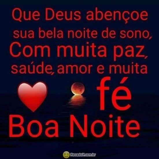 Que Deus abençoe sua bela noite de sono, com muita paz, saúde, amor e muita fé. Boa noite!