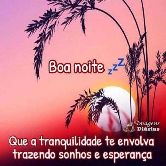 Boa noite! Que a tranquilidade te envolva trazendo sonhos e esperança.