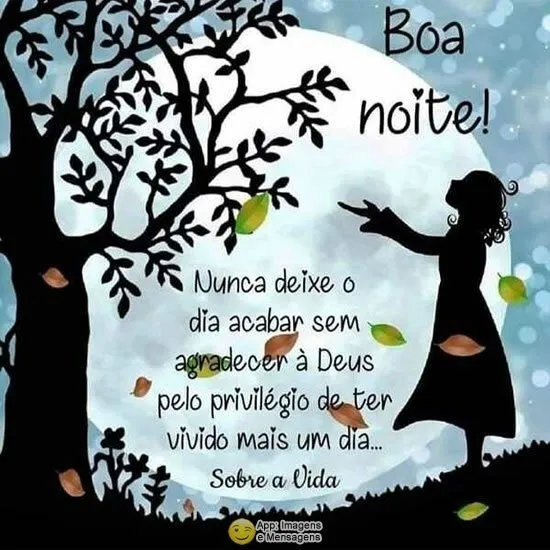 Boa noite! Nunca deixe o dia acabar sem agradecer a Deus pelo privilégio de ter vivido mais um dia...