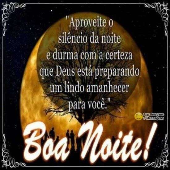 Aproveite o silêncio da noite e durma com a certeza que Deus está preparando um lindo amanhecer para você.