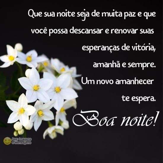 Que sua noite seja de muita paz e que você possa descansar e renovar suas esperanças de vitória, amanhã e sempre.