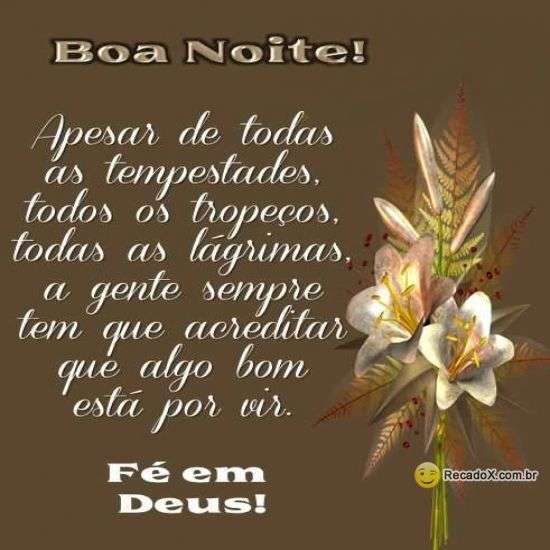 Apesar de todas as tempestades, todos os tropeços, todas as lágrimas, a gente sempre tem que acreditar que algo bom está por vir.