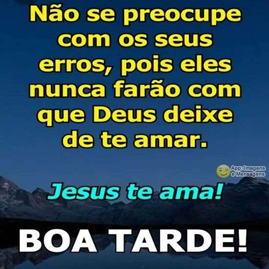 Não se preocupe com os seus erros, pois eles nunca farão com que Deus deixe de te amar. Jesus te ama! Boa tarde!