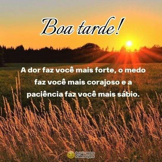 Boa tarde! A dor faz você mais forte, o medo faz você mais corajoso e a paciência faz você mais sábio.