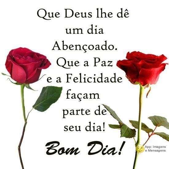 Que Deus lhe dê um dia Abençoado. Que a Paz e a Felicidade façam parte de seu dia! Bom Dia!