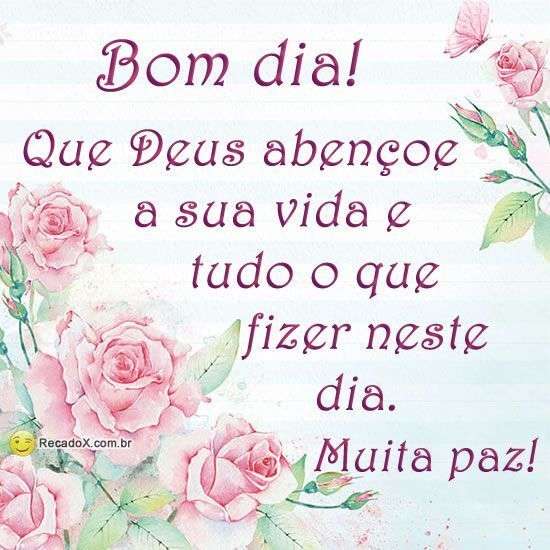 Bom dia Que Deus abençoe a sua vida e tudo o que fizer neste dia. Muita paz!