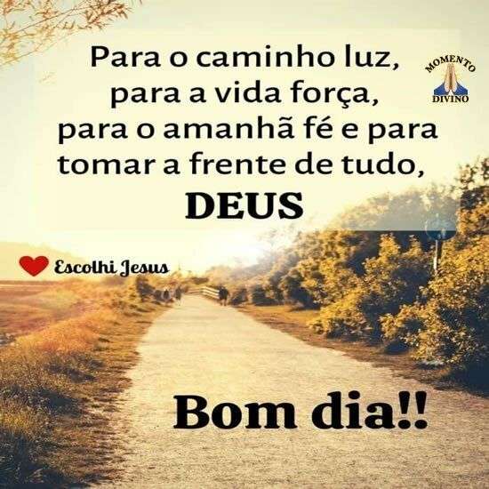 Para o caminho luz, para a vida força, para o amanhã fé e para tomar a frente de tudo, Deus. Bom dia!!