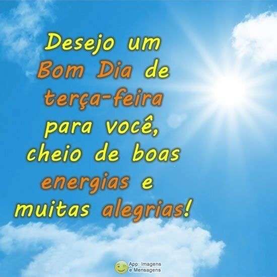 Desejo um Bom Dia de terça-feira para você, cheio de boas energias e muitas alegrias!