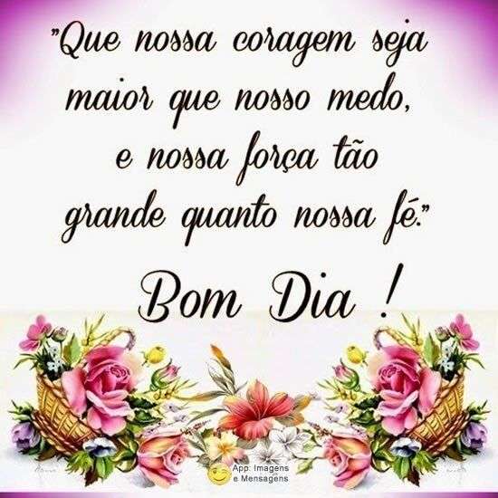 Que nossa coragem seja maior que o nosso medo, e nossa força tão grande quanto nossa fé. Bom dia!