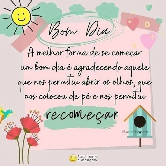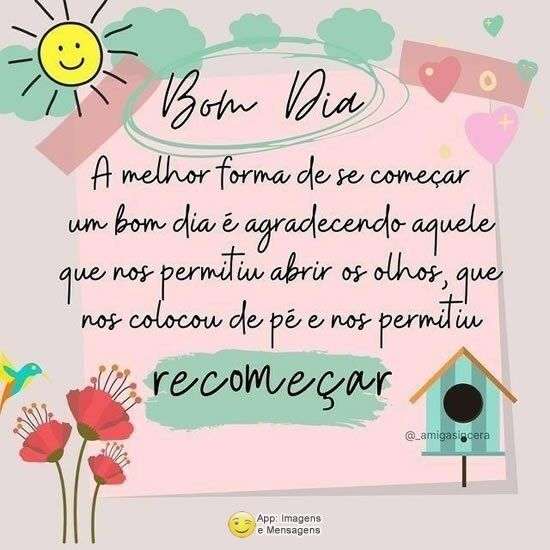 A melhor forma de se começar um bom dia é agradecendo aquele que nos permitiu abrir os olhos, que nos colocou de pé e nos permitiu recomeçar.