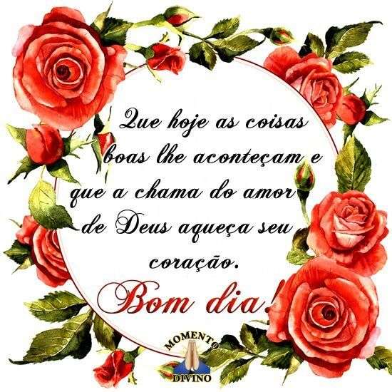 Que hoje as coisas boas lhe aconteçam e que a chama do amor de Deus aqueça seu coração. Bom dia!