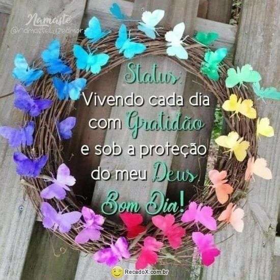 Status: Vivendo cada dia com gratidão e sob a proteção do meu Deus. Bom Dia!