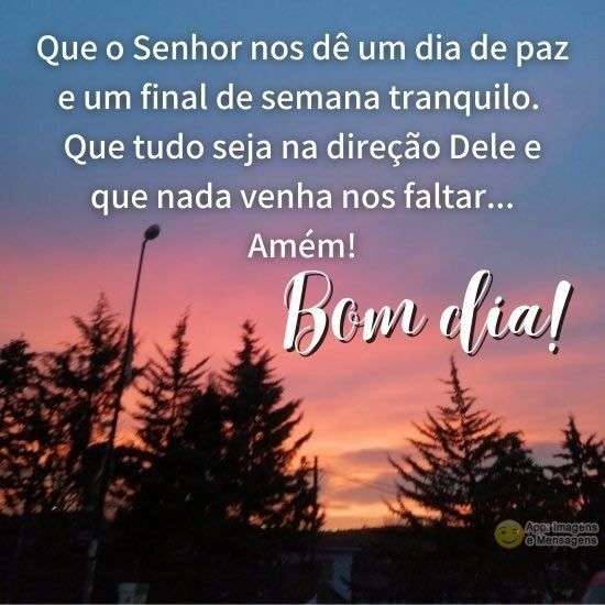 Que o Senhor nos dê um dia de paz e um final de semana tranquilo.