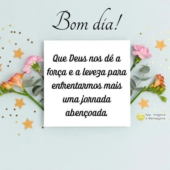 Bom dia! Que Deus nos dê a força e a leveza para enfrentarmos mais uma jornada abençoada.