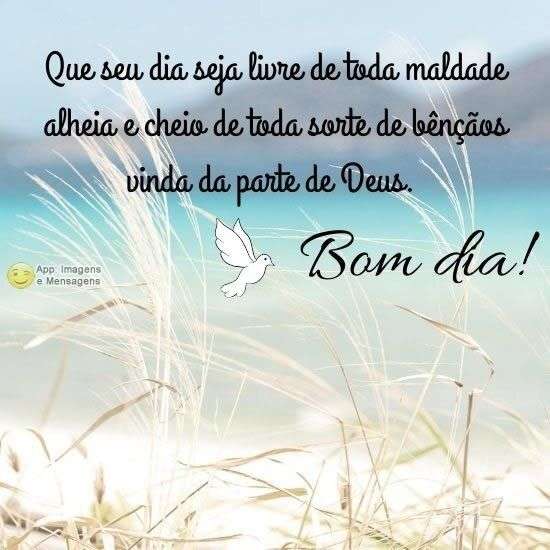 Que seu dia seja livre de toda maldade alheia e cheio de toda sorte de bênçãos vinda da parte de Deus. Bom dia!