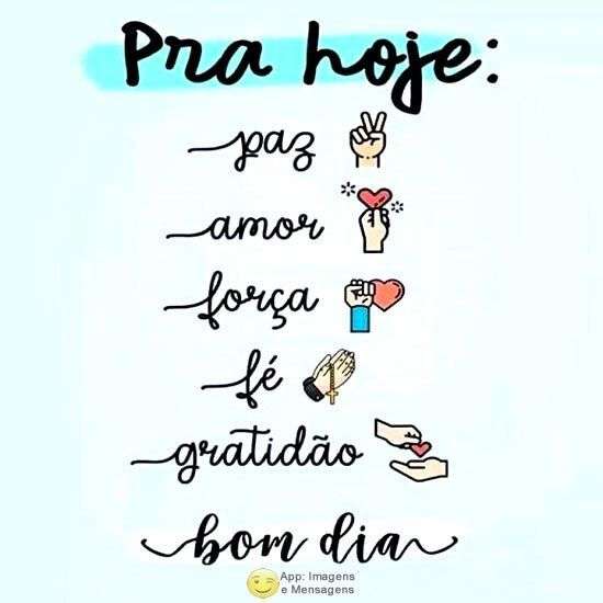 Pra hoje: paz, amor, força, fé e gratidão. Bom dia!