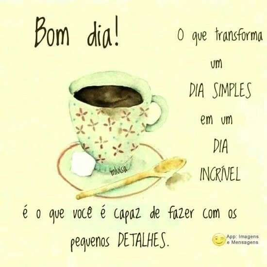 Bom dia! O que transforma um dia simples em um dia incrível é o que você é capaz de fazer com os pequenos detalhes.