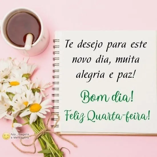 Te desejo para este novo dia, muita alegria e paz! Bom dia! Feliz Quarta-feira!
