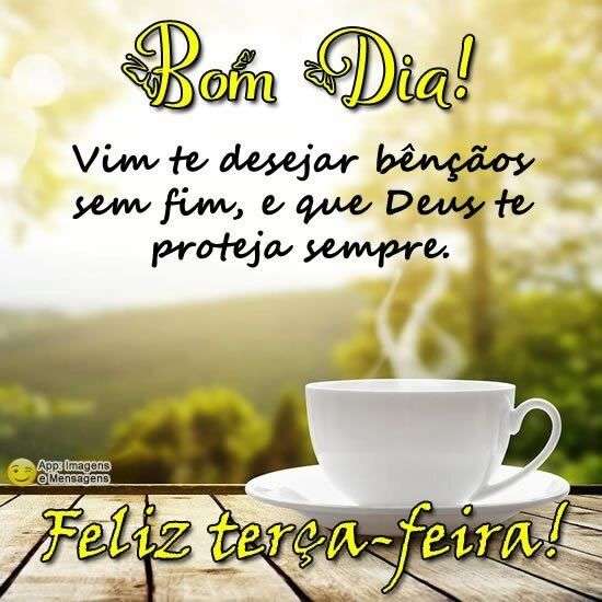 Bom dia! Vim te desejar bênçãos sem fim, e que Deus te proteja sempre. Feliz terça-feira!