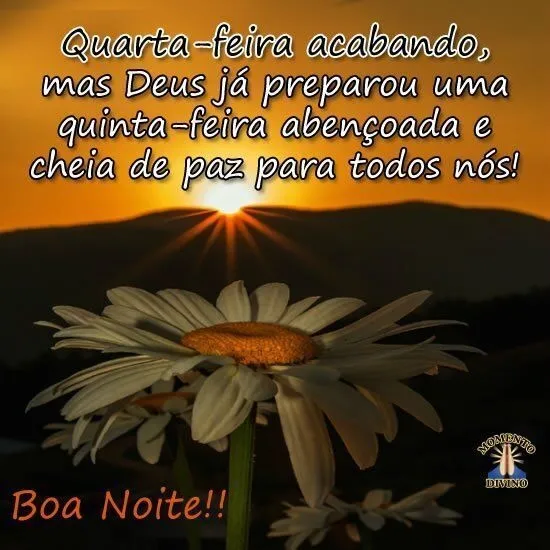 Quarta-feira acabando, mas Deus já preparou uma quinta-feira abençoada e cheia de paz para todos nós!