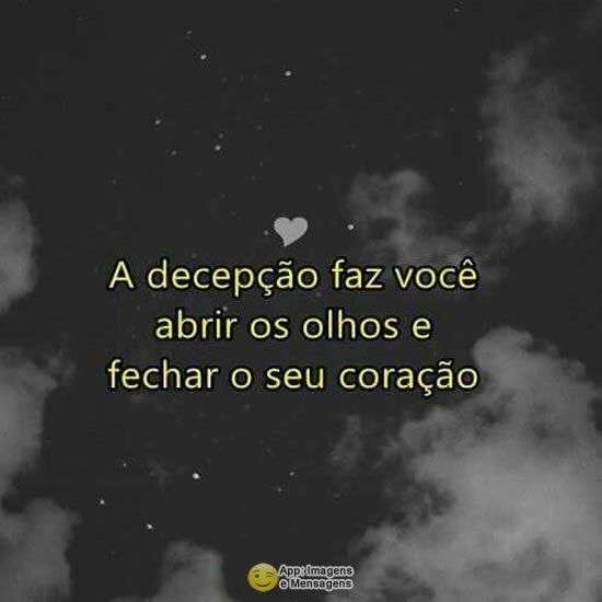 A decepção faz você abrir os olhos e fechar o seu coração.