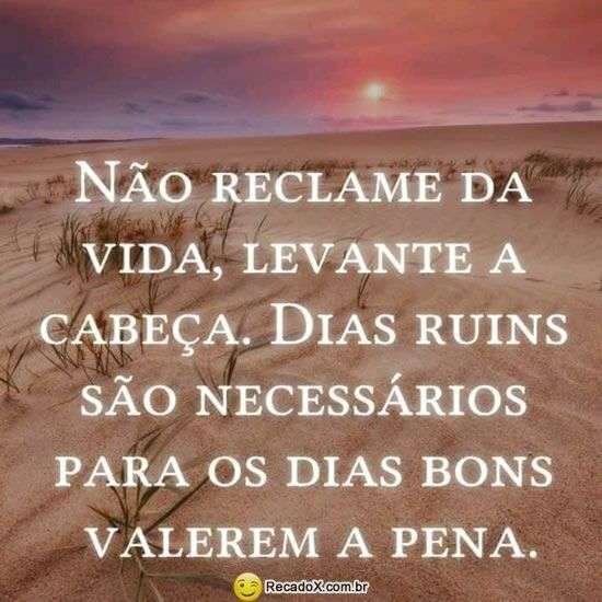 Não reclame da vida, levante a cabeça. Dias ruins são necessários para os dias bons valerem a pena.