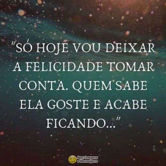 Só hoje vou deixar a felicidade tomar conta. Quem sabe ela goste e acabe ficando...
