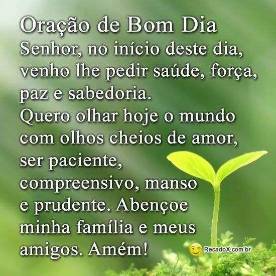 Senhor, no início deste dia, venho lhe pedir saúde, força, paz e sabedoria.
