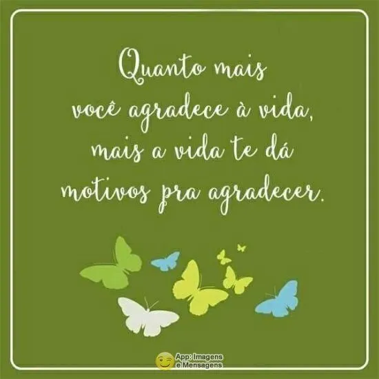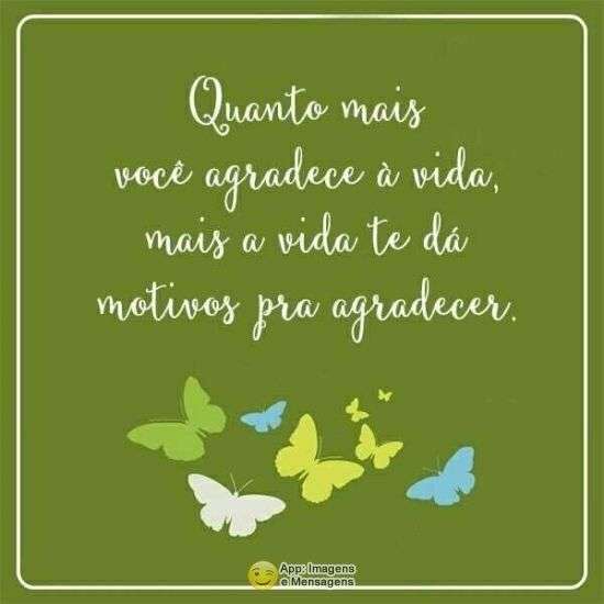 Quanto mais você agradece à vida, mais a vida te dá motivos pra agradecer .