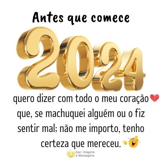 Antes que comece 2024 quero dizer com todo o meu coração que, se machuquei alguém ou o fiz sentir mal; não me importo, tenho certeza que mereceu.