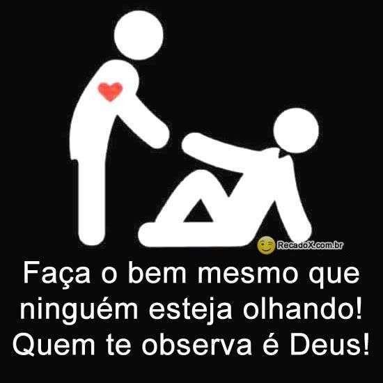 Faça o bem mesmo que ninguém esteja olhando! Quem te observa é Deus!