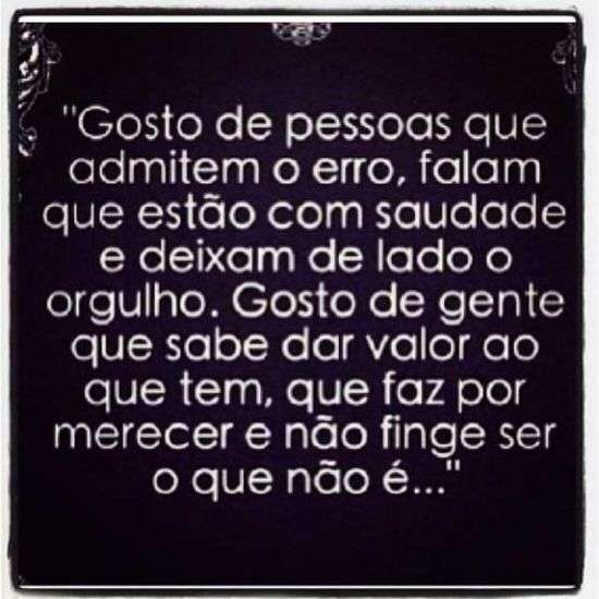 Gosto de pessoas que admitem o erro, falam que estão com saudade e deixam de lado o orgulho.