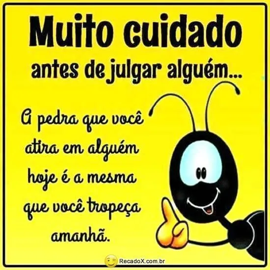 Muito cuidado antes de julgar alguém... A pedra que você atira em alguém hoje é a mesma que você tropeça amanhã.