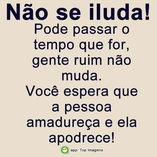 Não se iluda! Pode passar o tempo que for, gente ruim não muda. Você espera que a pessoa amadureça e ela apodrece!