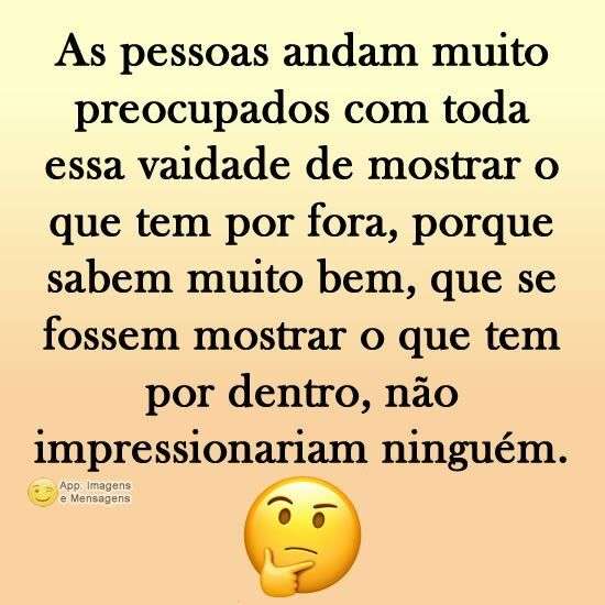 As pessoas andam muito preocupados com toda essa vaidade de mostrar o que tem por fora, porque sabem muito bem, que se fossem mostrar o que tem por dentro, não impressionariam ninguém.