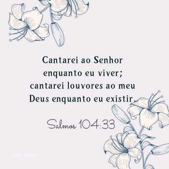Cantarei ao Senhor enquanto eu viver; cantarei louvores ao meu Deus enquanto eu existir. Salmos 104:33